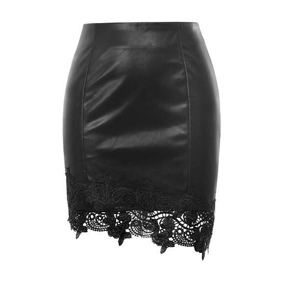 This cozy,stylish yet flirty PU leather skirt is worth to arouse your attention. The high waist and fit silhouette design can showcase your slender figure and seductive hips,while the lace spliced hem design will further enhance its charm. Perfect fit for matching with different style tops.