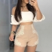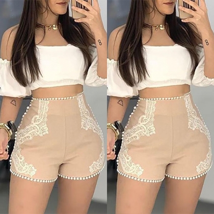 Fashion High Waist Slim Fit Lace Spliced Shorts