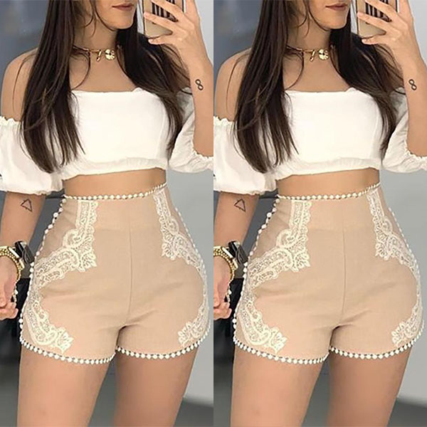 It is a good chance to flaunt off your charming and slender legs through this shorts. The lace spliced details will make this piece look more attractive. We suggest you matching with a crop top to have a sexy and flirty daily look.