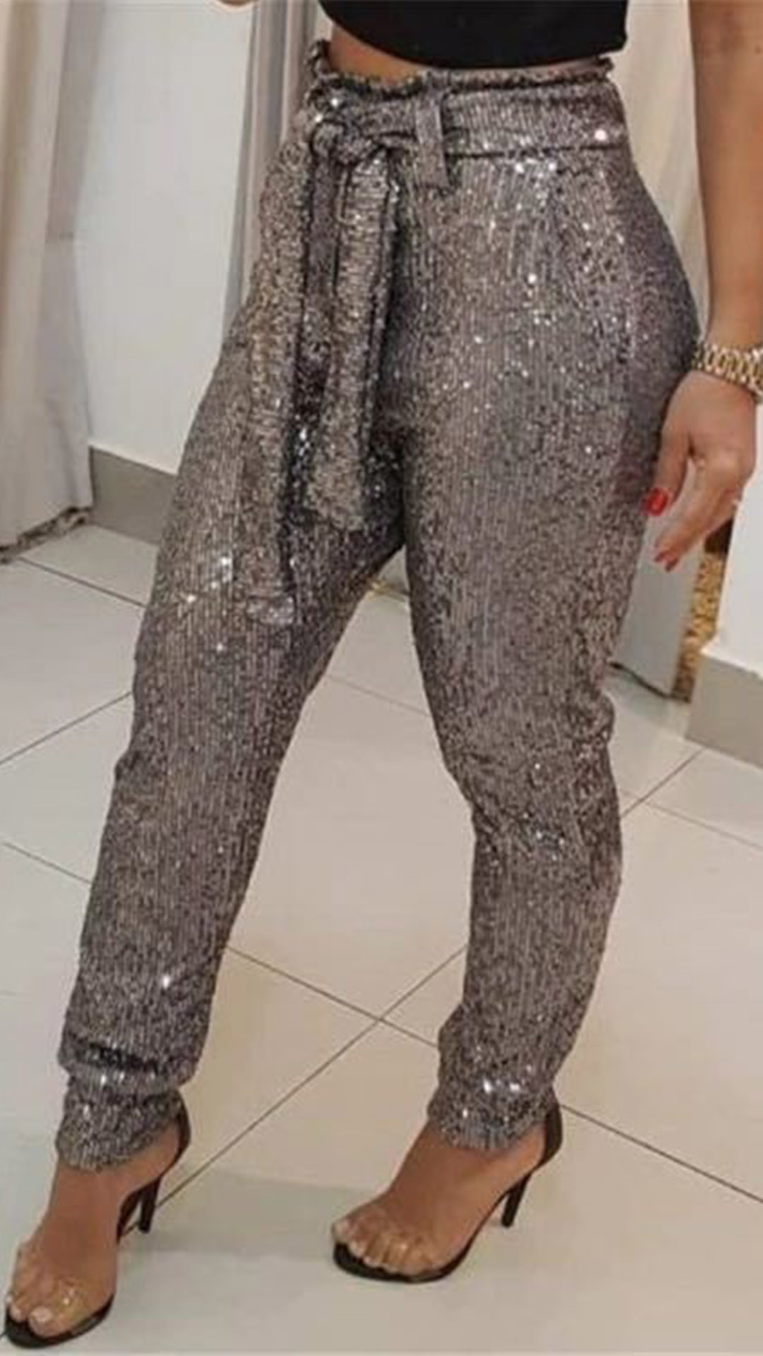 Thanks to the high waist and fit silhouette design,your slender legs can have a full display in this pants. Comes with a waist strap,which will make this piece look more attractive. All-match design allows to be matched with different style tops.