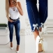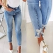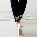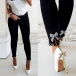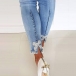 This jeans comes with high waist and a fit silhouette,which is a good way to showcase your slender figure and legs. Moreover,the pearls details at the leg opening part will further enhance its entire charm. All-match design allows to be matched with different style tops.