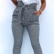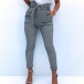 Fashion High Waist Slim Fit Plaid Pants with Waist Strap