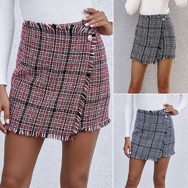Every girl's wardrobe should have such a stylish,flirty and all-match skirt. It is designed with plaid element,stylish and popular. The high waist and fit silhouette design can showcase your slender figure. Like it? Then buy one!