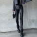 When you wanna flaunt off your slender legs,this PU leather pants can be your perfect choice. Comes with a flattering black tone,with high waist and a fit silhouette design,this pants can give you a comfortable day as well as offer you different matching styles.