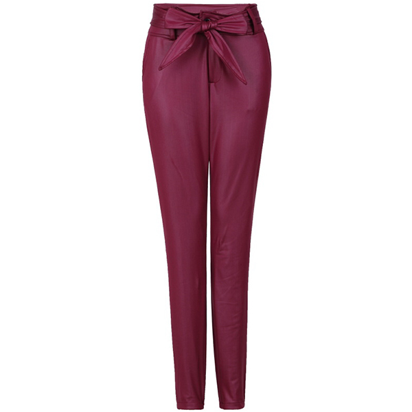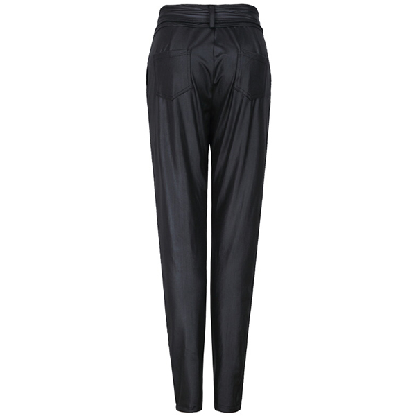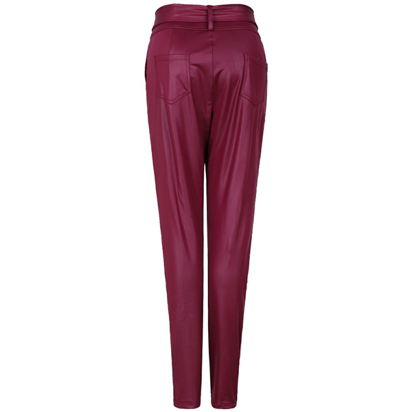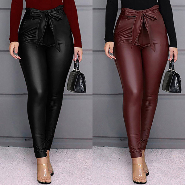 It is a good chance to showcase your slender legs through this PU leather pants. Solid color style,finished with high waist and a fit silhouette design,classic yet stylish. Moreover,the waist strap design can boost its entire charm. When matching with a crop top,you can look sexy and charming enough!