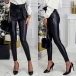 Fashion High Waist Slim Fit PU Leather Pants with Waist Strap