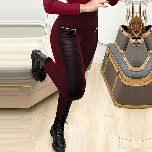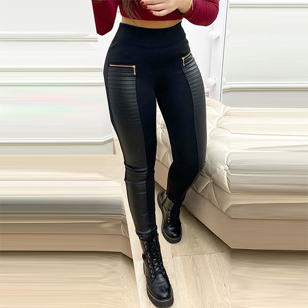 Thanks to the high waist and tight silhouette design,your slender figure can have a full display. Moreover,the PU leather spliced details will make this piece look more stylish and attractive. You can match with a crop top to achieve for a sexy and flirty vibes.