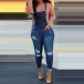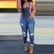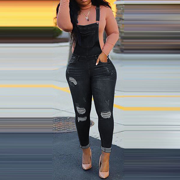 Fashion High Waist Slim Fit Ripped Denim Overalls