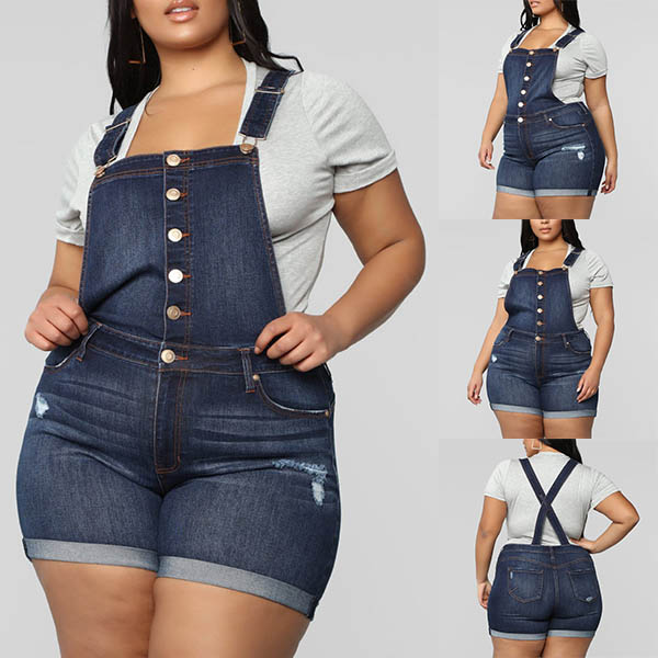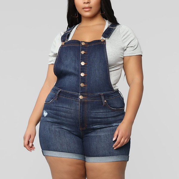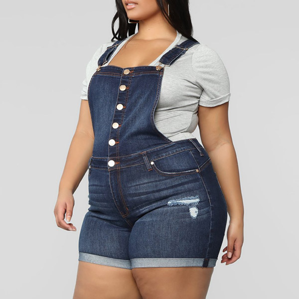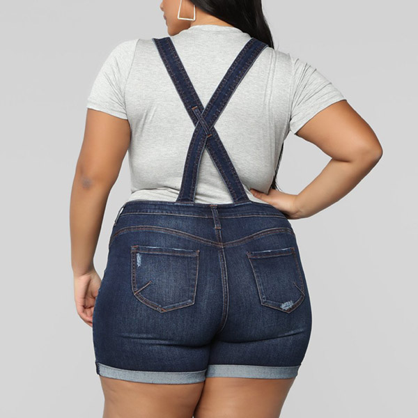 Fashion High Waist Slim Fit Ripped Denim Shorts Overalls