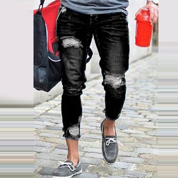 Finished with high waist,a fit silhouette and ripped details,classic,cozy yet stylish. You cam match with