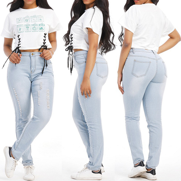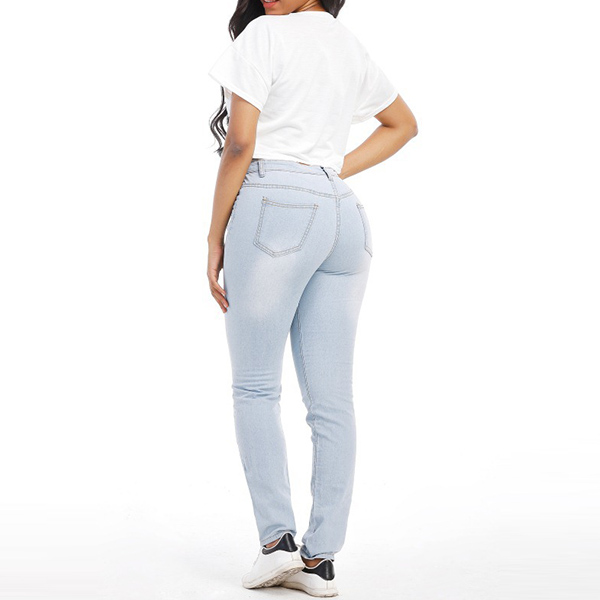 Crafted from soft,breathable and stretch fabric,accompanied with high waist,skinny silhouette and ripped details,