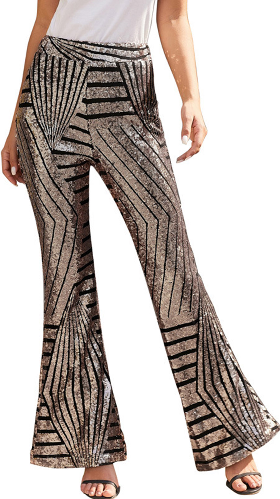 Fashion High Waist Slim Fit Sequin Flared Pants