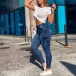 Make your wardrobe more complete by adding this stylish and all-match jeans. The high waist and fit silhouette design can showcase your slender legs. Crafted from soft and breathable fabric,this jeans not only can offer you the comfortable wearing,but also can offer you different matching styles.