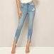 It's fair to say that skinny jeans are a fashion mainstay, so ride the trend with this jeans. The high waist and fit silhouette design can showcase your slender legs,while the slit hem and ripped details will make this piece look so stylish and attractive. It can hardly go wrong no matter what kind of tops you pair with!