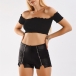 When you wanna flaunt off your charming and slender legs,this PU leather shorts would be a good choice. Finished with high waist and a fit silhouette,this piece allows to be matched with different style tops. And the zipper design will further enhance its entire charm. So why not take interest in it?