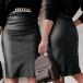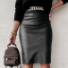 Fashion High Waist Slit Hem Back Slit Hem PU Leather Skirt