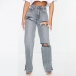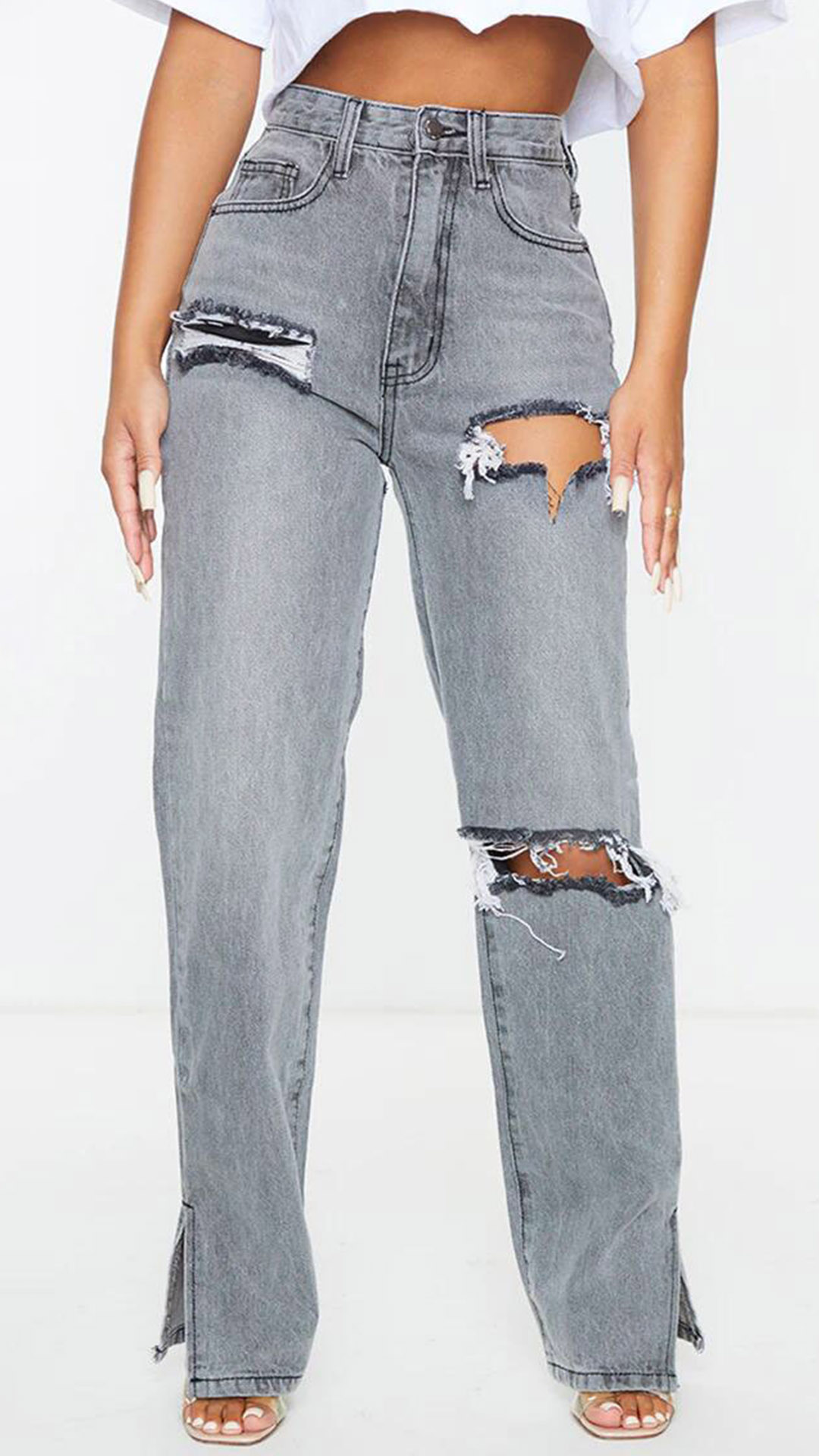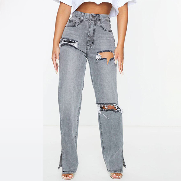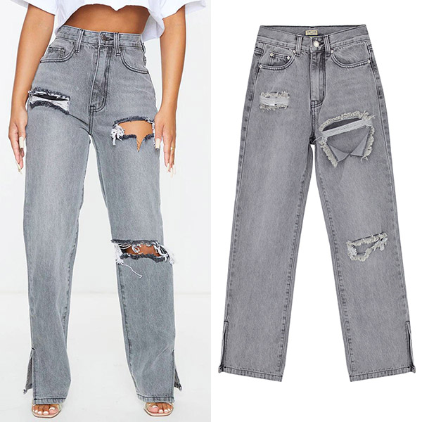 Wanna try a different style jeans? Then just have a look at this piece! The high waist and straight-leg silhouette design will help showcase your slender legs. Moreover,the slit hem and hollow out ripped details will make this piece more distinctive and attractive. Just match it with your favourite top to start your wonderful day.
