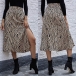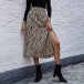 Fashion High Waist Slit Hem Leopard Printed Skirt