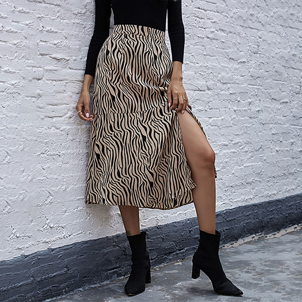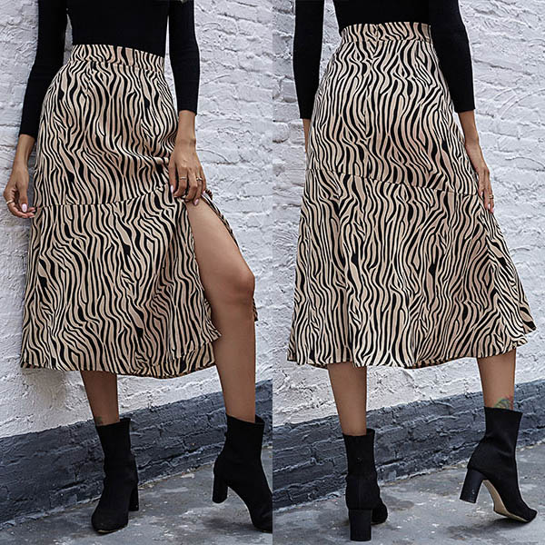 Hey,girls,it is wise for you to add this skirt into your wardrobe. The leopard printed details make this piece look more eye-catching and stylish. Finished with high waist and slit hem design,this skirt also can showcase your slender figure. Perfect fit for matching with different style tops.