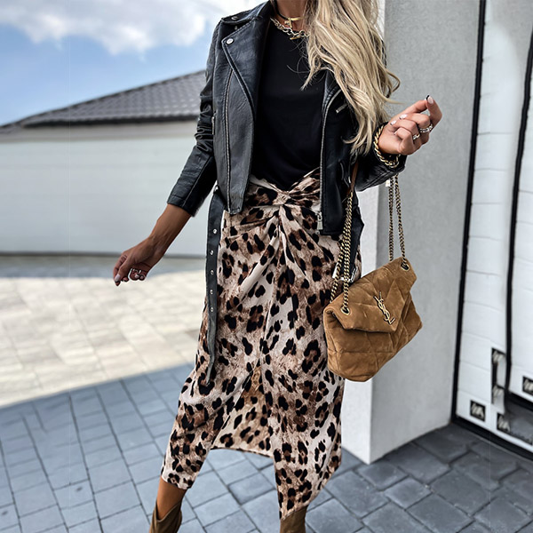 For a stylish,all-match yet flirty skirt,you can just make your eyes focused on this piece. The leopard printed details make this piece look so eye-catching,and the slit hem design will add some sassy and sexy vibes. Try to match with a crop top or sling top or any kinds of tops you like to start your wonderful day.