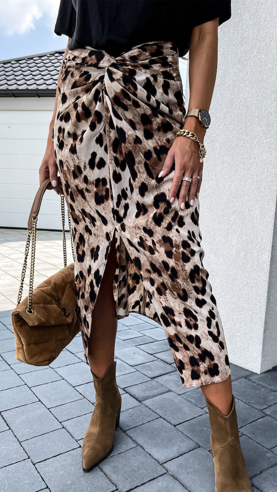 Fashion High Waist Slit Hem Leopard Printed Slim Fit Skirt