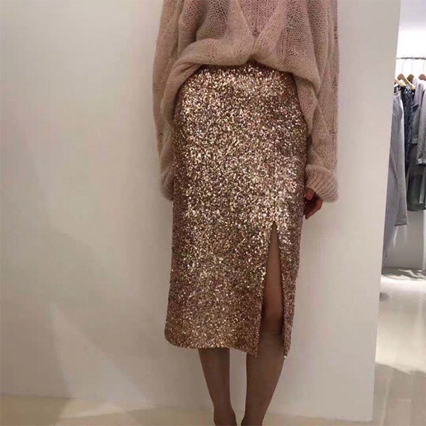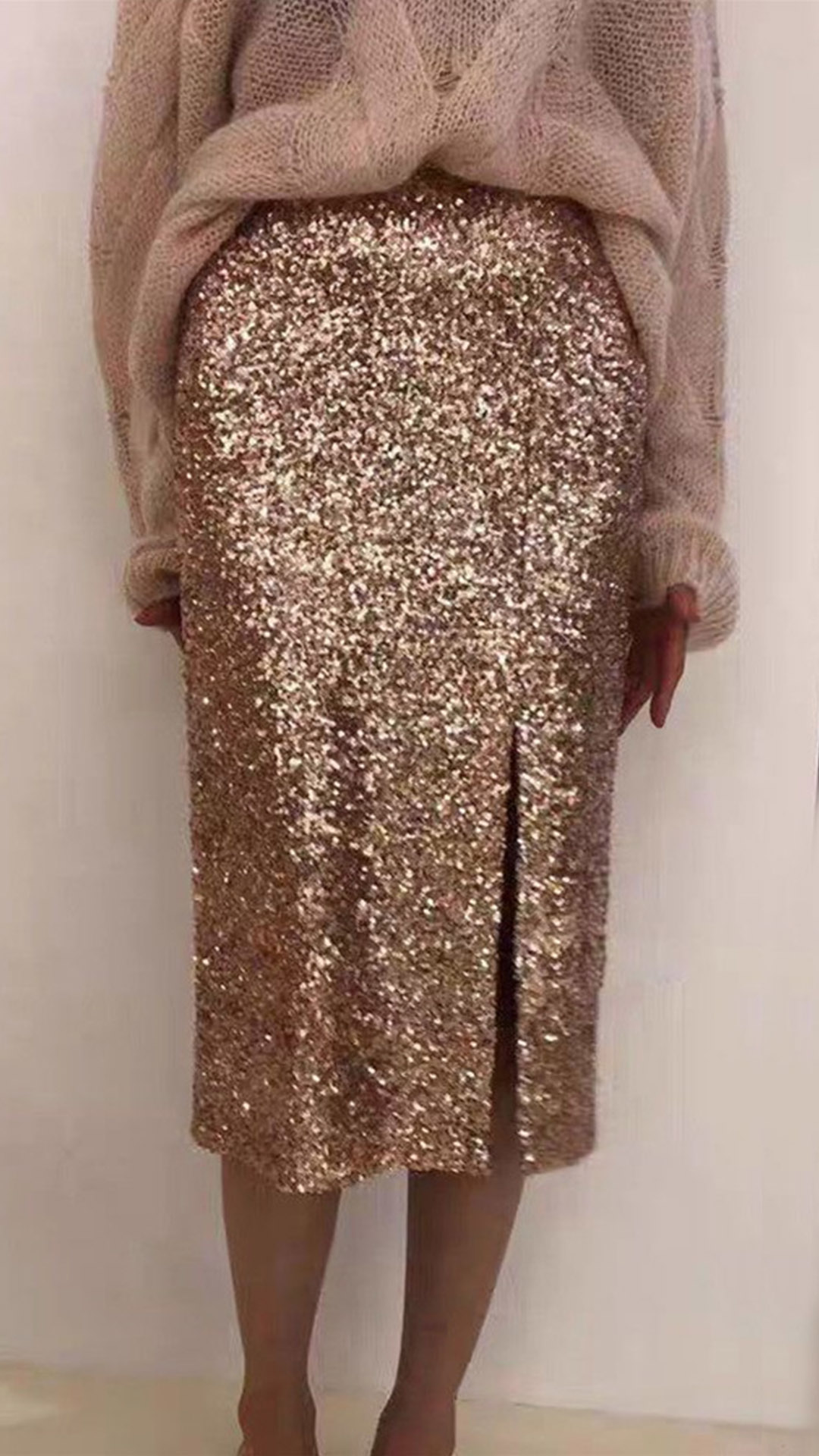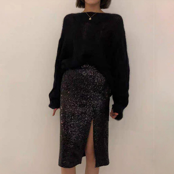 Wanna some bling outfits? Then you can make your eyes focused on this sequin skirt. The high waist and slit hem design will showcase your slender figure. One of the design highlights is that this skirt can be matched with different style tops to achieve for different fashion styles.