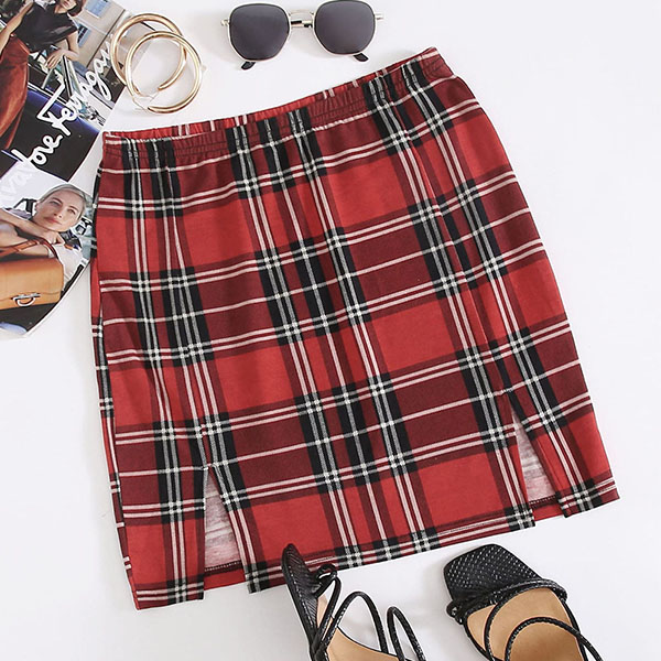 Add a touch of beauty to your look with the skirt. The plaid element will help you gain more eyes,while the high waist,slit hem and fit silhouette design will showcase your charming and slender legs. All-match design can offer you different fashion styles by teaming with different style tops.