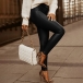 Fashion High Waist Solid Color Tight PU Leather Pants