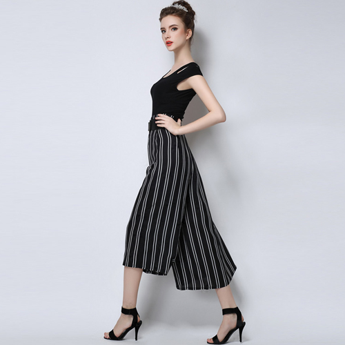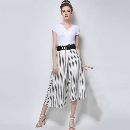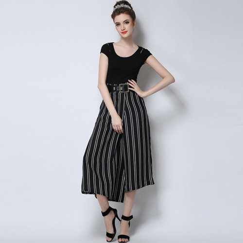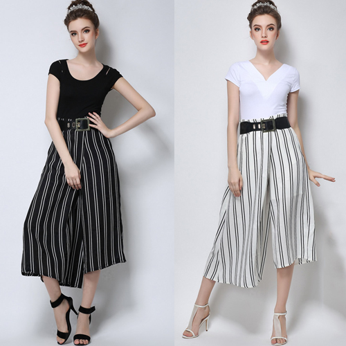 Take this wide leg pants to lead the fashion trend! Retro striped style,with high waist and irregular