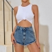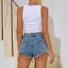 Fashion High Waist Tassel Hem Denim Shorts