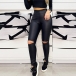 Fashion High Waist Zipper Hem Hollow Out Slim Fit PU Leather Pants