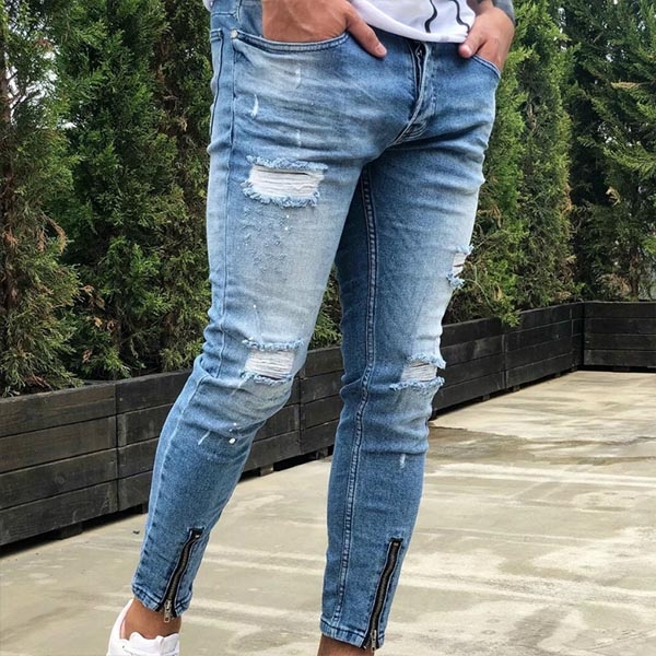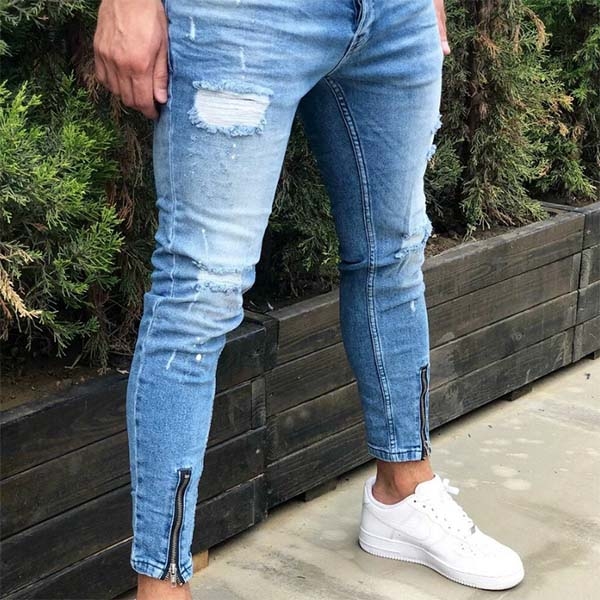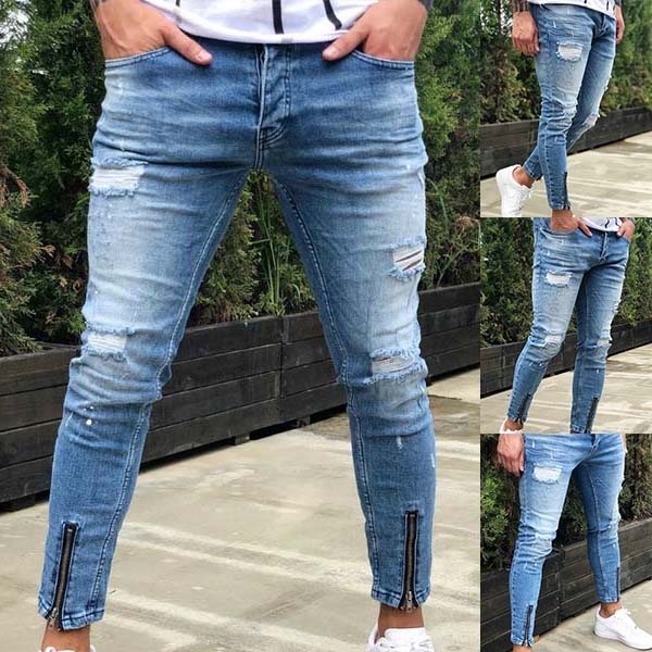 design can showcase your slender legs,while the ripped and zipper design at the leg opening