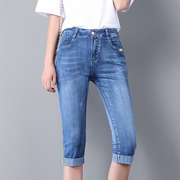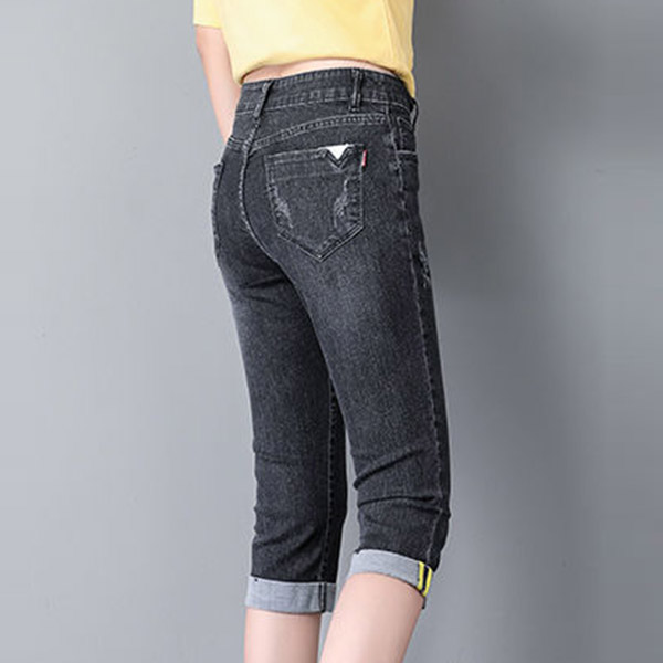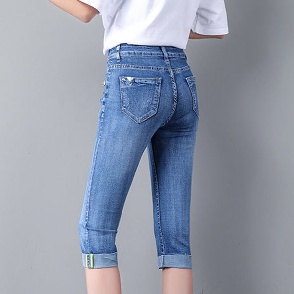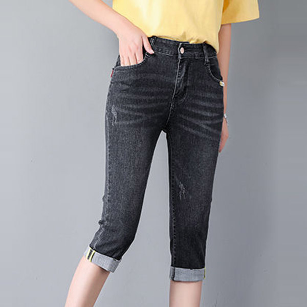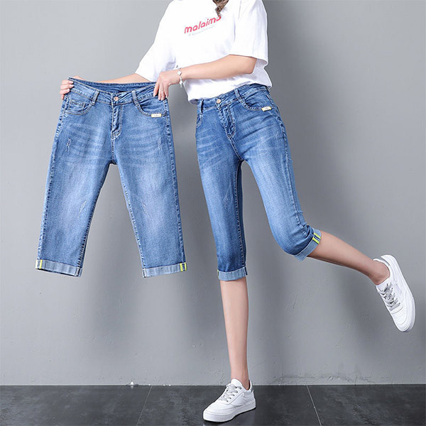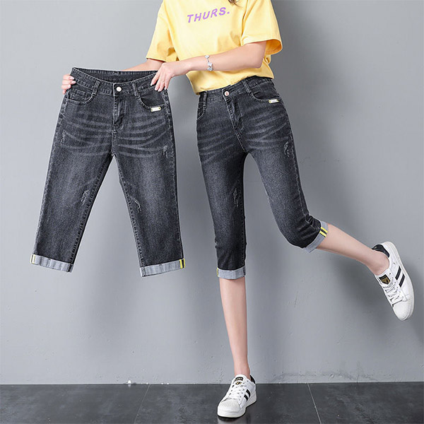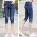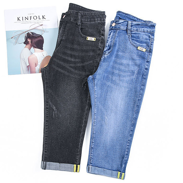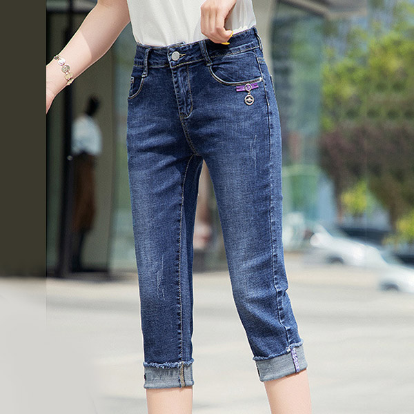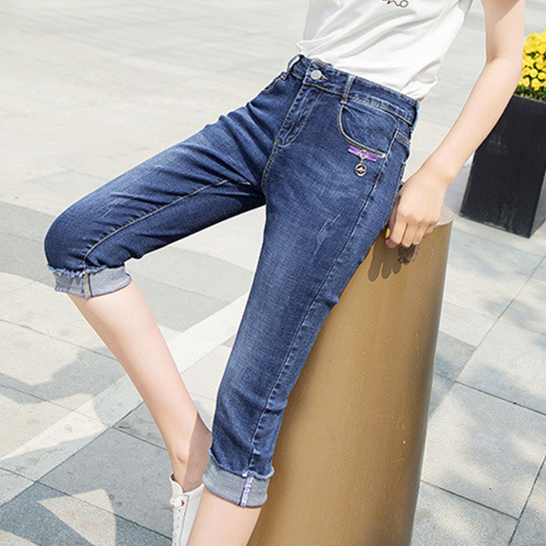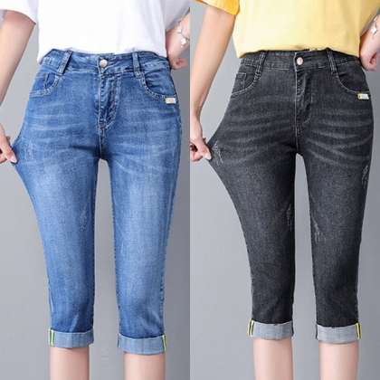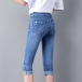 Fashion High-Waisted 7/8 Length Stretchy Skinny Old-washed Denim Jeans