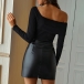 Fashion High-waisted Slit Hem Slim Fit PU Leather Skirt