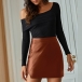 The PU leather skirt is always regarded as a popular piece by fashion girls. Combined with high waist design, it can make you look thinner and more fashionable than ordinary skirt. moreover,the slit hem design can lend you a dash of flirty vibes. Try to match with your crop top to look sexy and alluring.