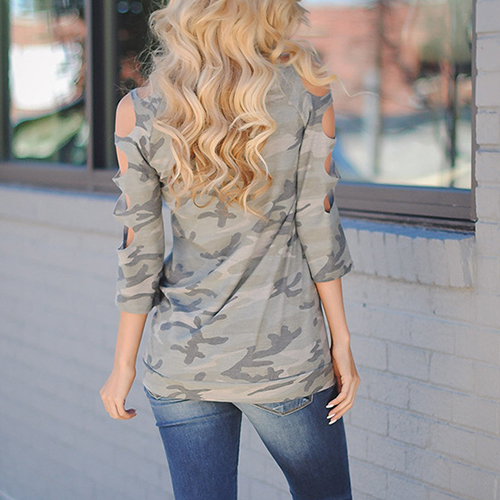 Bear the cozy and stylish vibe with this t-shirt! Camouflage printed style,designed with 3/4 sleeve,round neck and