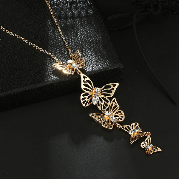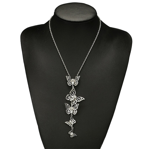 Enrich your fashion accessories collection with this necklace. Two colors for your optional:gold color and silver color. The hollow out butterfly pendant design makes it look so vivid and attractive. So why not boost your charm with the help of this necklace.