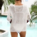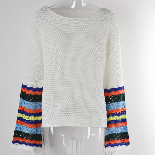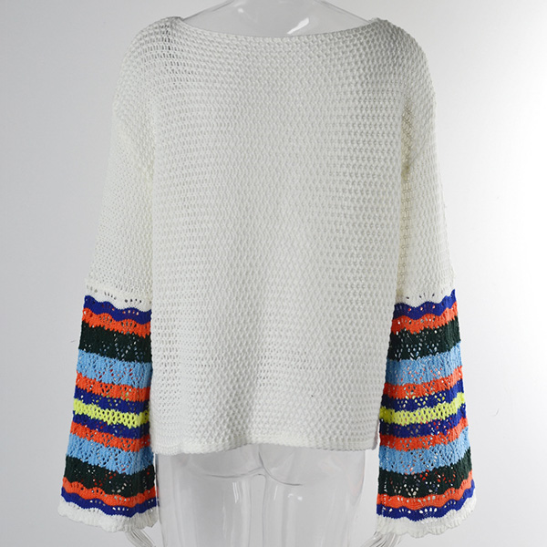 Fashion Hollow Out Colorful Stripe Pattern Knitted Swimming Cover-up Shirt