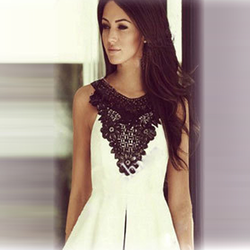This dress features hollow out crochet spliced design,adding its attractive and stylish elements.