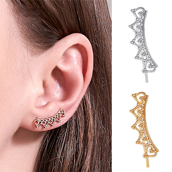 These stud earrings are designed with hollow out heart shape,which make it full of sweet and romantic vibes. Clip-style design makes it easier to wear and off. Embellish your ears and boost your entire charm with these pieces.