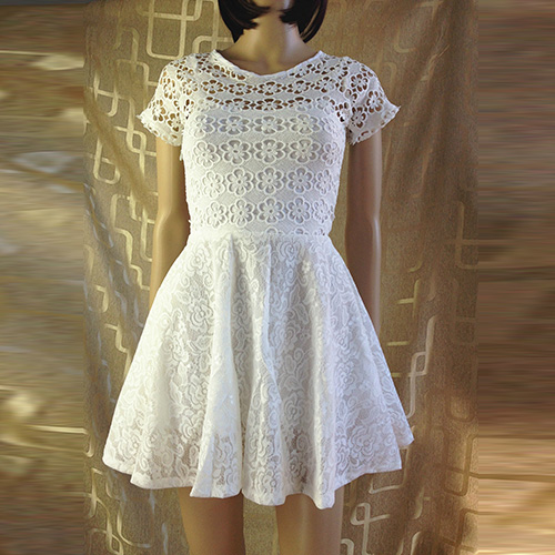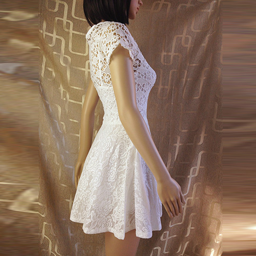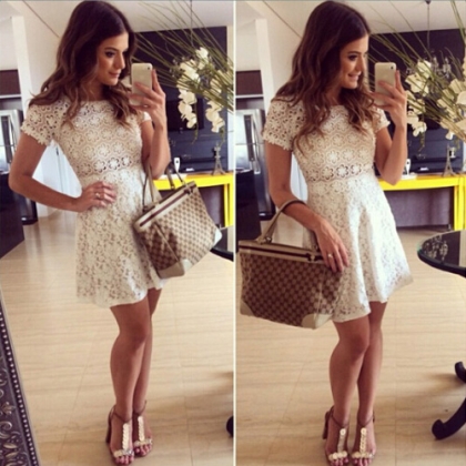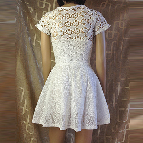 Two-piece style,including a hollow out lace dress and a tank tops.