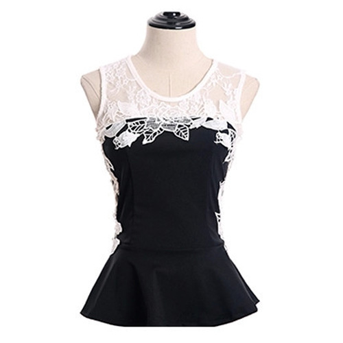 Hollow out lace spliced design makes this top look so sweet and feminine. It features sleeveless,