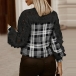 Fashion Hollow Out Lace Spliced Long Sleeve Plaid Top
