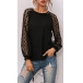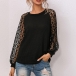 Fashion Hollow Out Lace Spliced Long Sleeve Round Neck Solid Color Knit Top