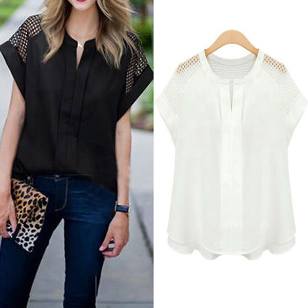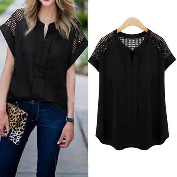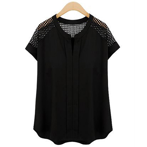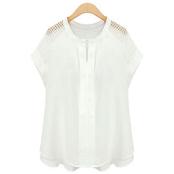 and a loose silhouette,simple,casual yet stylish. Moreover,its hollow out lace spliced details make this piece look more appealing.