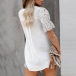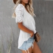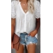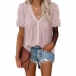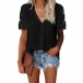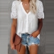 Fashion Hollow Out Lace Spliced Short Sleeve V-neck Solid Color Top