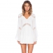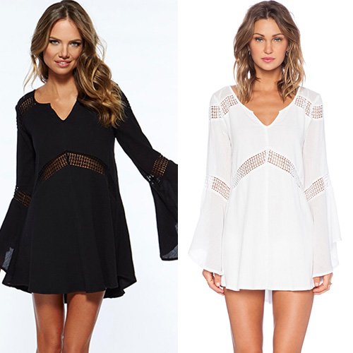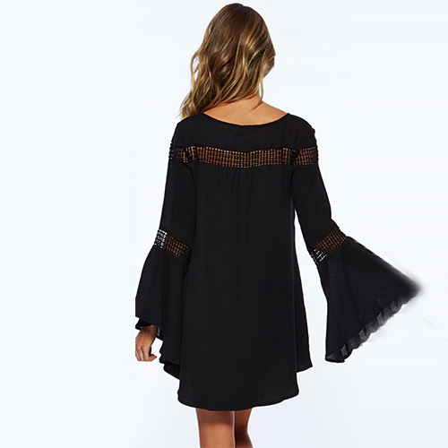 Fashion Hollow Out Lace Spliced Trumpet Sleeve Solid Color Dress