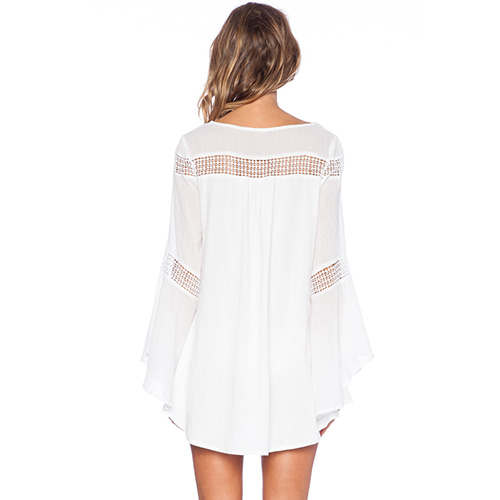 lace spliced design,making it look more attractive and feminine. Trumpet sleeve design is the