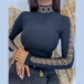Fashion Hollow Out Ling Sleeve High Collar Rhinestone Spliced Slim Fit Top