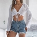 Fashion Hollow Out Long Sleeve Self-tie Crop Cover-up Cardigan